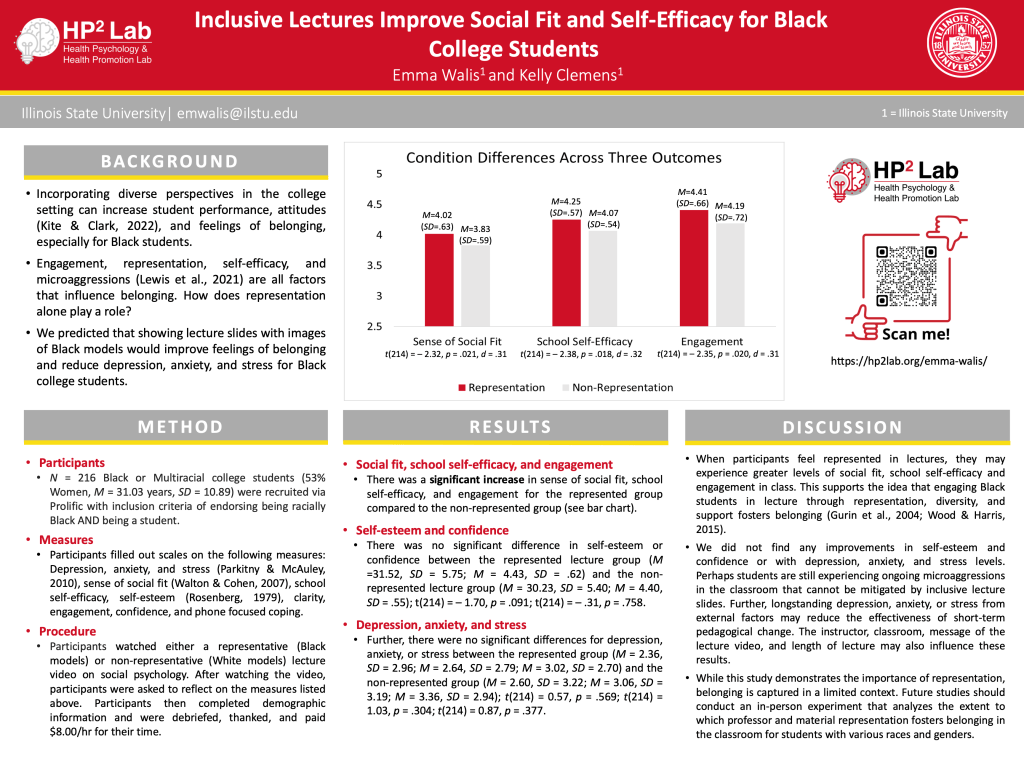 Research objective for the current study: To determine whether Black college students feel more included and less anxious, stressed, and depressed when lecture materials include Black models.